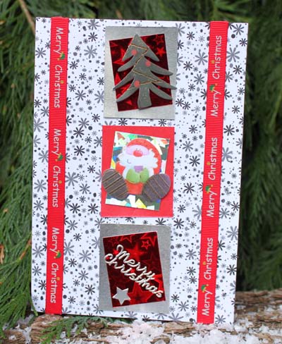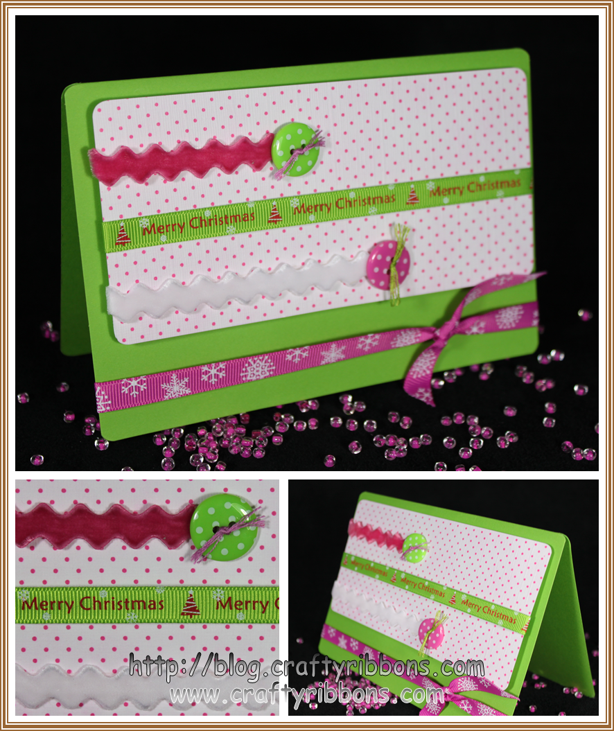 Ooooh I am so loving these new Funky Christmas ribbons and I have made my FIRST Christmas card! I have been a bit busy of late and just have not found the time to play with all my new ribbons, but over the weekend I got stuck in.