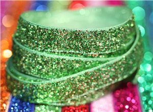 A woven velvet ribbon that is heavily glittered, but the best bit is the glitter will not fall off - amazing!!